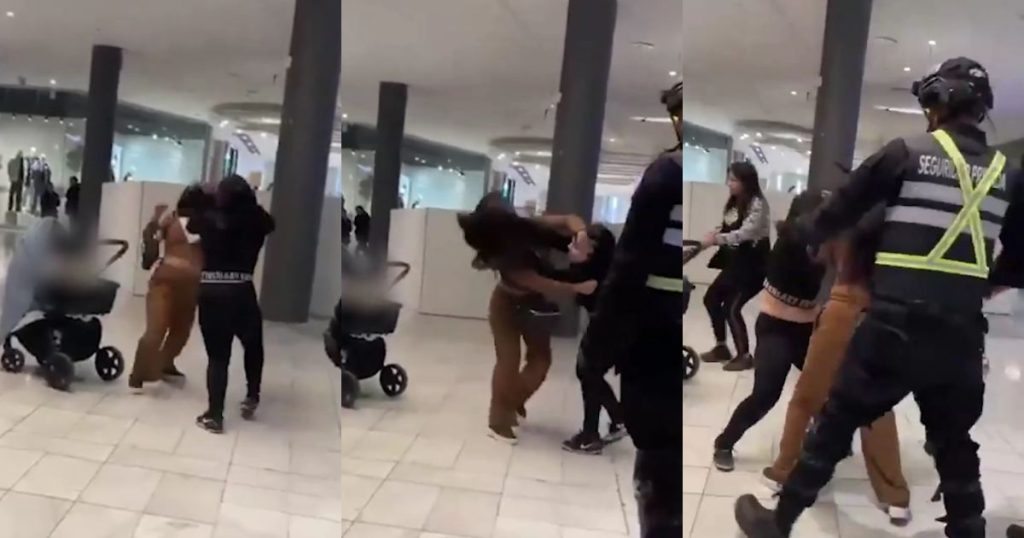 El enfrentamiento incluyó insultos, zamarreos, patadas y tirones de pelo. Minutos después, guardias del centro comercial intervinieron y lograron separarlas.
