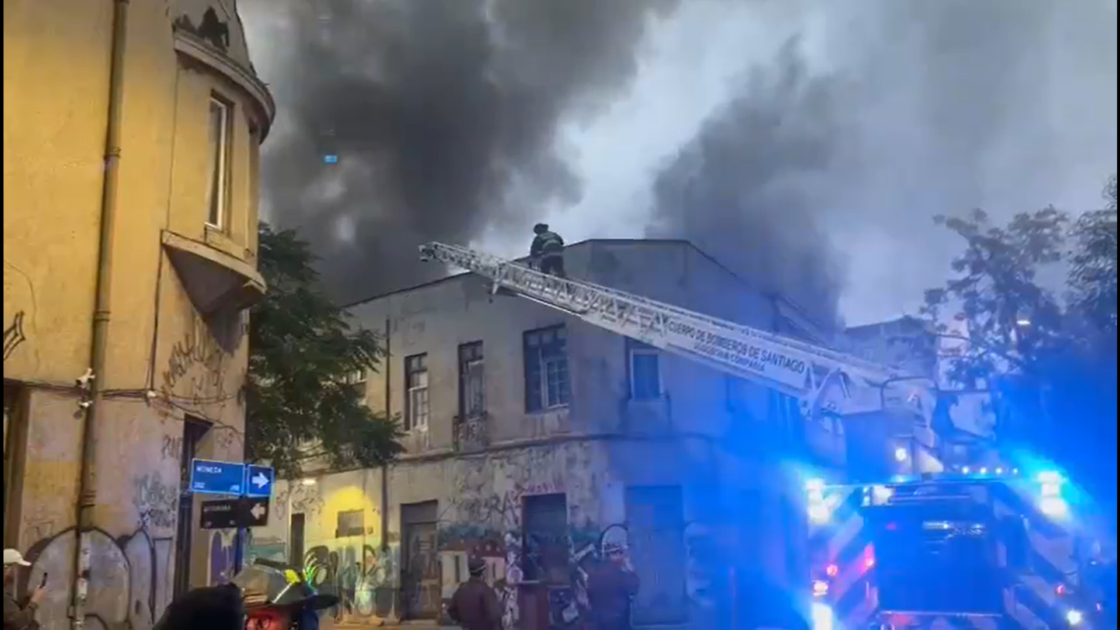 Este domingo se registró un incendio en una vivienda en Santiago Centro afectado, al menos, a una vivienda.