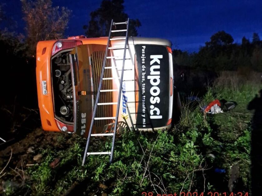 Durante la última hora, se reportó el choque y volcamiento de un bus en Ñiquén, que se dirigía a Puerto Montt desde Santiago.