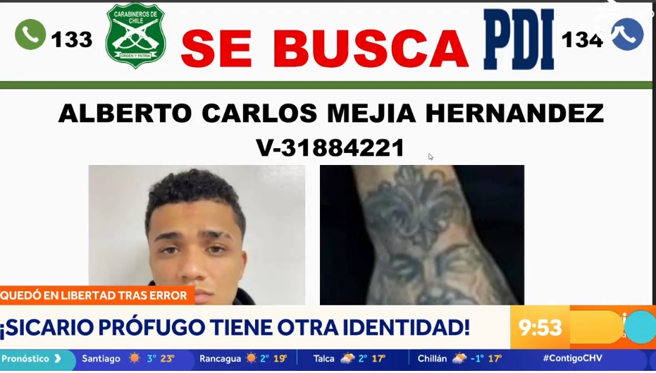 Carabineros y la PDI emitieron una nueva alerta internacional para dar con el paradero del sicario venezolano, esta vez utilizando su verdadera identidad, tras otro error en el orden de sus nombres.