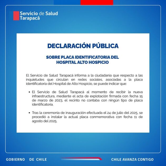 Respuesta pública del Servicio de Salud de Tarapacá