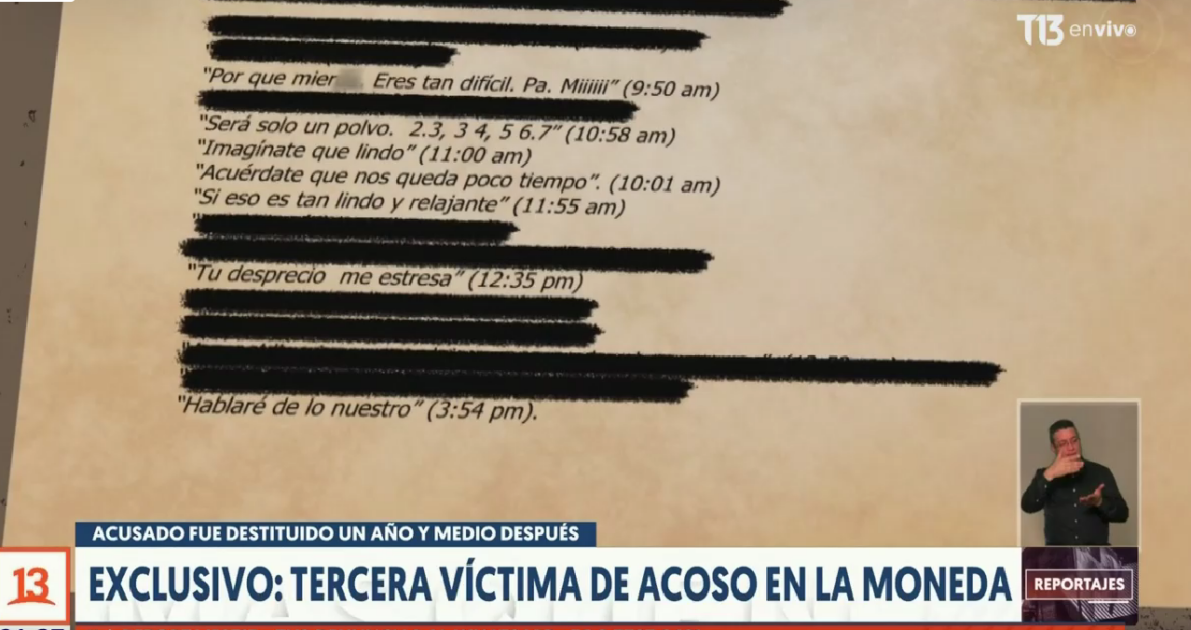 Un informe interno reveló conversaciones del sujeto, que incluían amenazas y propuestas sexuales. Según informó T13, estos mensajes habrían sido enviados en 2022.