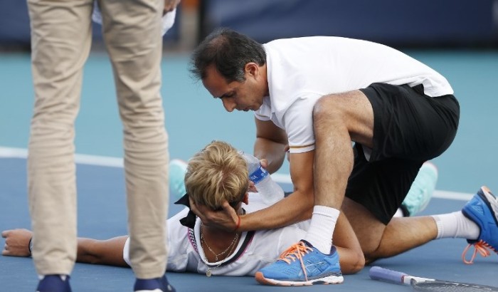 Cuando el marcador iba 2 a 2, el tenista colapsó y de un momento a otro terminó en el suelo. Fue gracias a una serie de calambres, debido al gran esfuerzo que había realizado, que su cuerpo no reaccionó más. La imagen que se vio en la transmisión era espeluznante, ya que el jugador se estremecía en el suelo del dolor.