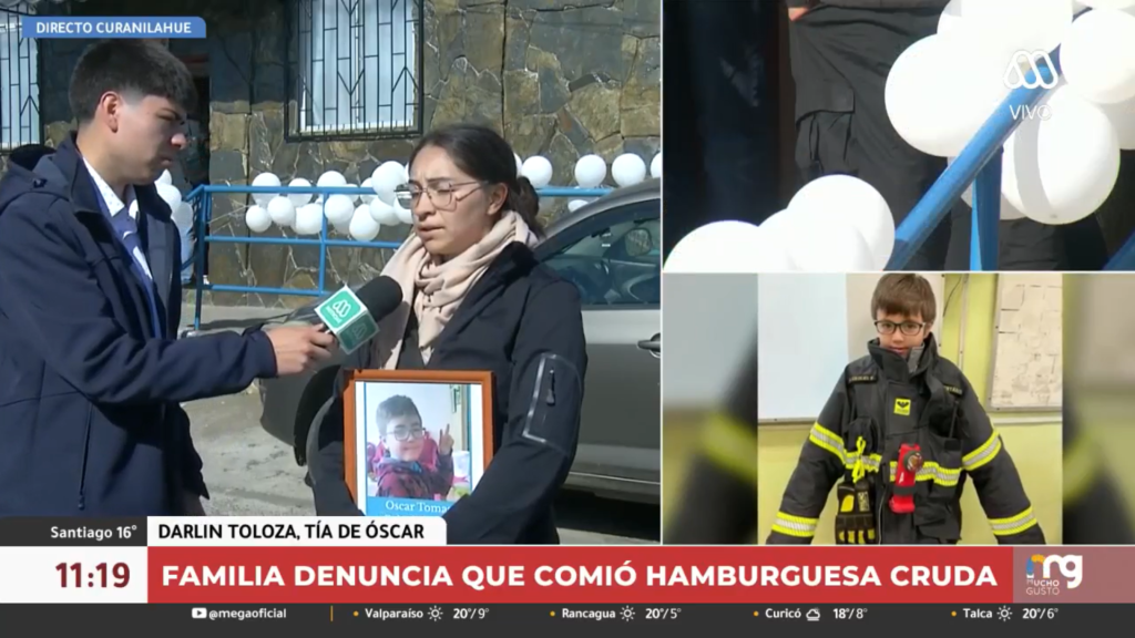 Si bien la madre del niño logró recuperarse, la salud de Óscar continuó empeorando, siendo trasladado al Hospital de Curanilahue. Así lo relató Darlin Toloza, tía del niño que murió tras comer la hamburguesa, en conversación con Mucho Gusto.