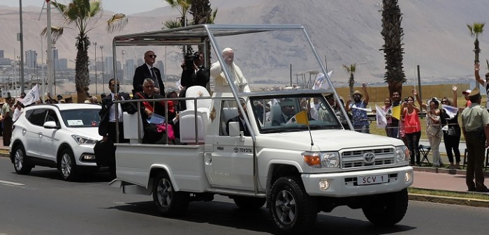 El jefe de la Iglesia Católica tiene pactada su llegada al aeropuerto de Iquique a las 16:45 horas, tras lo cual dejará suelo nacional y se dirigirá a Perú para otra visita pastoral de 4 días.