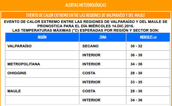 La “ola de calor” de ese día se sentirá entre las regiones de Valparaíso y Maule. En la zona interior de la primera es donde se registrará la máxima del día: 38 grados.