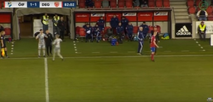 Todo ocurrió en la segunda división del fútbol sueco, en un partido entre Osters y Degerfors, cuando el joven Mattias Ozgun se preparaba para ingresar al terreno de juego, a un costado de la cancha. Era la segunda vez que el jugador sumaba minutos oficiales con la camiseta del Degerfors.
