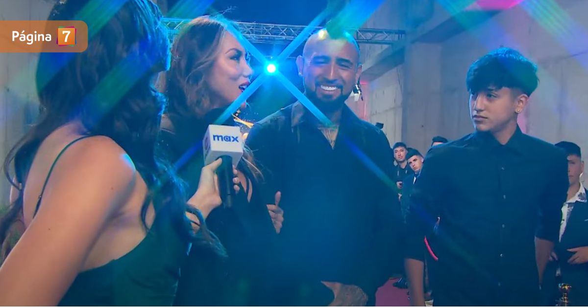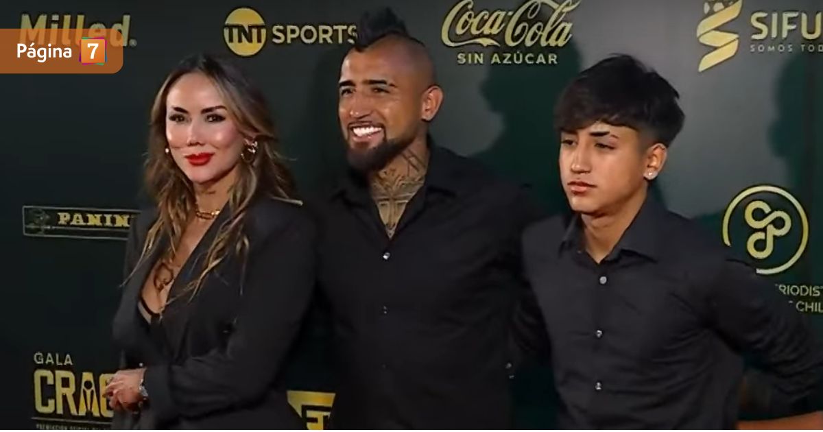 La tarde de este lunes, durante la alfombra roja de la ‘Gala Crack’. Arturo Vidal apareció junto a su pareja, Sonia Isaza y su hijo mayor, Alonso Vidal.