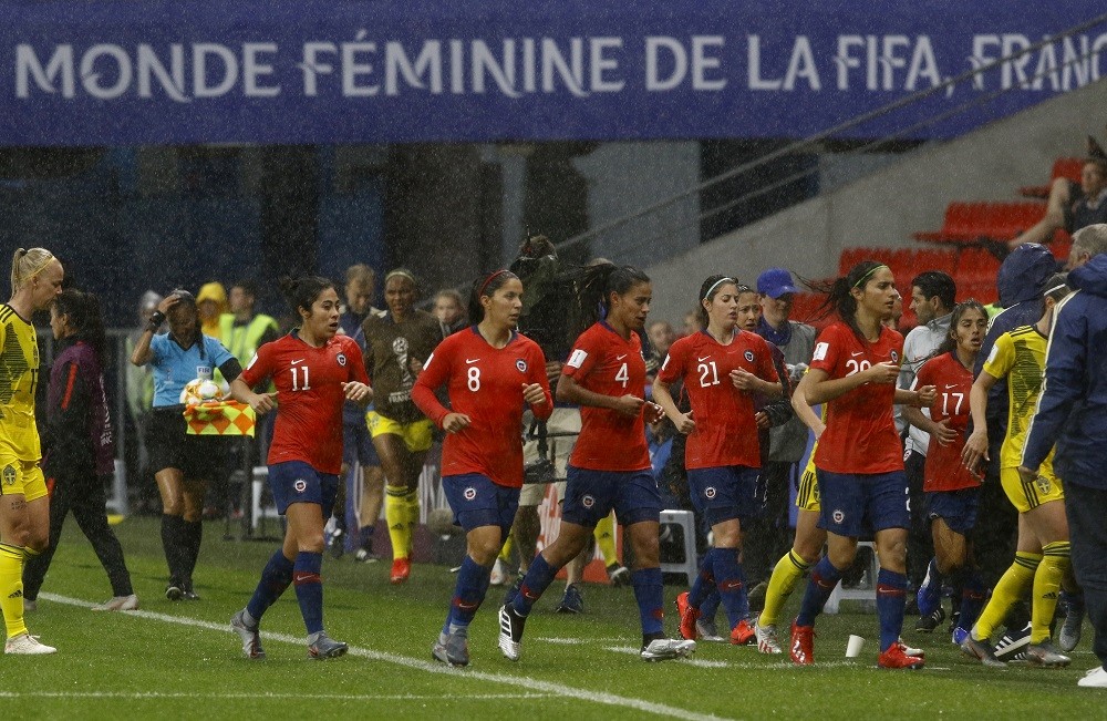 El duelo inaugural del grupo F del Mundial femenino de Francia, entre Chile y Suecia, debió suspenderse por la lluvia torrencial y la tormenta eléctrica que se dejaron caer sobre el campo de juego.
