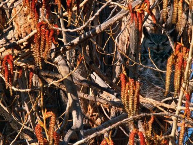 En la oscuridad sus ojos se verán grandes y amarillos, pero en el día los búhos pueden pasar perfectamente desapercibidos gracias a su hermoso pero recatado plumaje. ¿No lo crees? Apuesto que no podrás decir que viste al ave que representa a la sabiduría en la siguiente imagen.