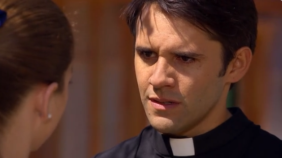 En la teleserie, el actor de 35 años encarna al párroco de Villa Ruiseñor, un pueblo donde el poderoso ‘Armando Quiroga’ (Álvaro Rudolphy) hace y deshace, y en el que comenzará a sentir una fuerte atracción por una de sus hijas, ‘María Elsa’ (Mariana Di girólamo).