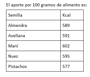 Además aclaró la cantidad de calorías que tienen las semillas oleosas por cada 100 gramos.