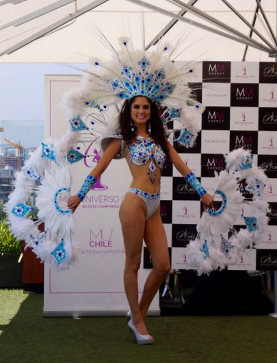 La ganadora presentó tres tenidas con las que concursará en Miss Universo: un traje inspirado en los glaciares del sur del Chile, un traje de gala y uno de baño.