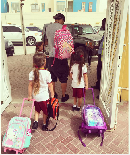 Su “comunicado” va acompañado por una foto de sus hijas (sin mostrar su rostro) caminando junto a sus verdaderas mochilas del colegio.
