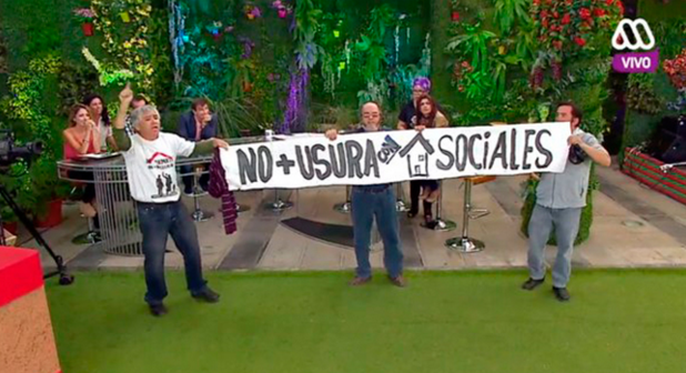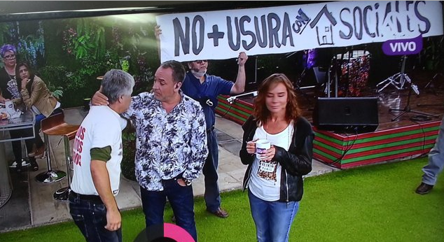 Grupo de manifestantes se tomó las pantallas para protestar en contra de la usura con las viviendas sociales. pic.twitter.com/aeshCPocjU