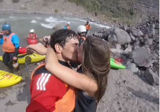 El apasionado premio de Kel a Pangal tras su triunfo en competencia de kayak