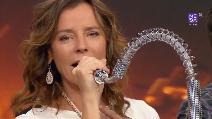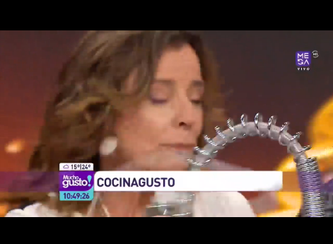 La ex candidata a reina del Festival de Viña interpretaba una canción mientras se desarrollaba el espacio de cocina, donde preparaban una lasaña, cuando tomó la manguera del lavaplatos para usarlo de micrófono.