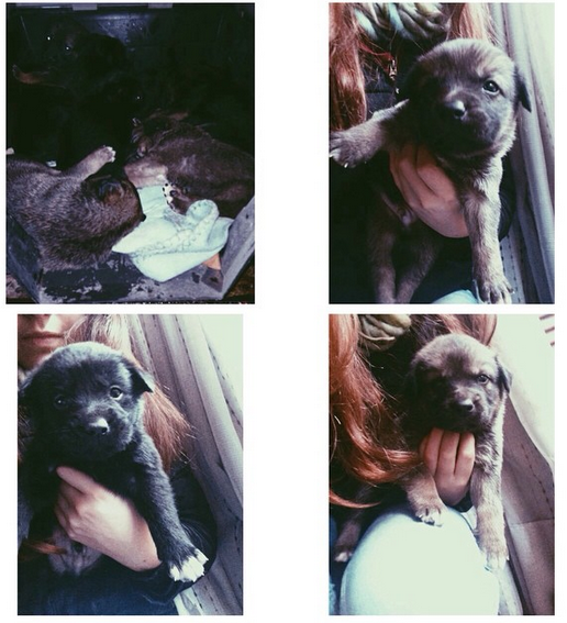 “Acabo de recoger a 8 perritos de la autopista! Son preciosos, también estaba la mamá pero no se quiso subir al auto, tienen 1 mes y medio aprox. Así que están disponibles para adopción!!