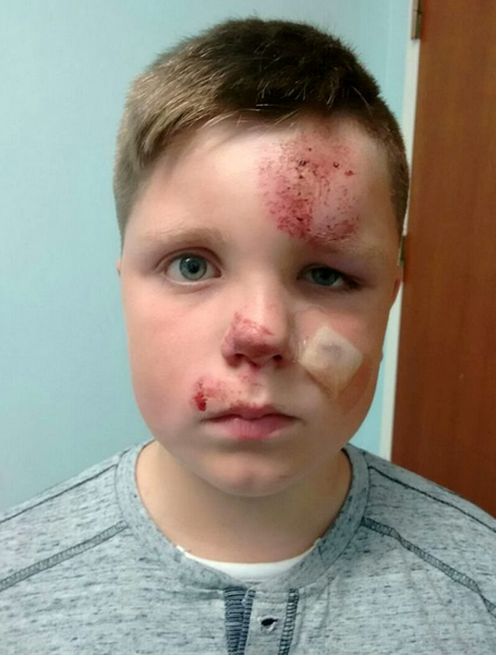 Como el accidente ocurrió cuando salía del colegio Noel-Baker de la ciudad de Derbyshire (Reino Unido), la familia del estudiante subió fotos de él cubierto de sangre y en la camilla de hospital, como una advertencia para el resto de los estudiantes y niños.
