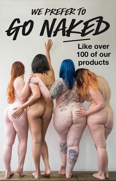 La apuesta es bastante sencilla y valiente: mujeres de todos los tamaños y colores de pelo posando desnudas de espalda y de frente. “Preferimos irnos al desnudo. Como alrededor de 100 de nuestros productos”, anuncia la publicidad, en referencia a que venden champú y jabones que no vienen en envases plásticos.