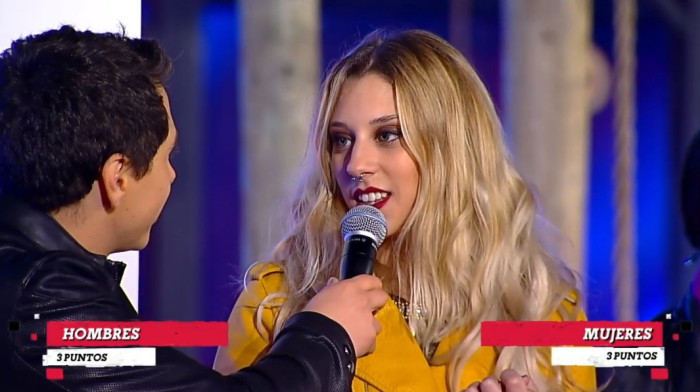 En la lúdica actividad, que enfrentaba a hombres contra mujeres, el exYingo le preguntó a la española “¿cuántos lados tiene un cubo?”, a lo que Collado respondió: “7”.