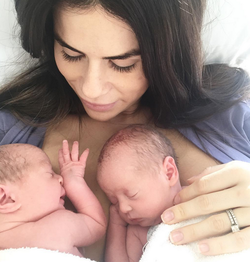 “Hoy han pasado dos días desde que di a luz a nuestras gemelas, Evie y Aria. Esta foto tomó un montón de coraje, porque acabo de levantarme y caminar tras tener una cesárea. Algo que esperaba evitar, pero que sin embargo fue mucho mejor de lo que pensaba y la recuperación ha sido increíble”, comenzó a escribir en Instagram.