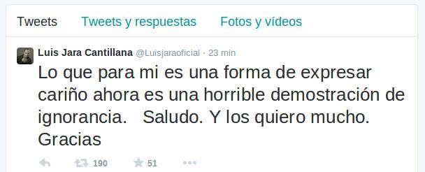 Específicamente, unos mal intencionados colocaron en su cuenta de Twitter (@Luisjaraoficial) una imagen bastante ordinaria de dos miembros masculinos.