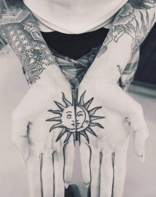 Según señaló a El Clarín, el que más le ha dolido fue en esta última parte… pues además sus manos le inflamaron. El tatuaje consiste en un sol y una luna combinados que al unir sus manos muestran la obra completa.