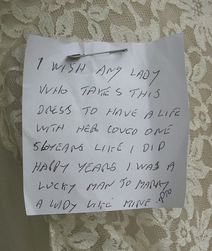 La misteriosa nota encontrada en un vestido de novia donado a la caridad