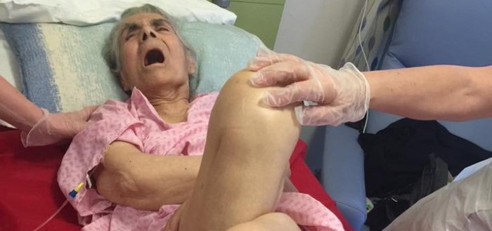 Sólo pudo ver y fotografiar las severas heridas de su madre, incluyendo lesiones de grado cuatro y un pie ennegrecido, cuando la trasladaron al hospicio. En el hospital le dijeron además que las de su madre eran de las peores heridas de ese tipo que jamás habían visto.