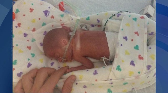 La mujer alcanzó a estar en trabajo de parto por media hora, cuando su hijo llegó al mundo. Era tan pequeño, que los médicos creyeron que estaba muerto, pero Emily presionó para verlo. No la dejaron: 45 minutos después, los especialistas regresaron para decirle que estaba bien. El equipo había logrado mantenerlo con vida gracias a una incubadora artesanal.