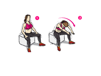 Siéntate en una silla con los pies separados y la espalda recta. Apoya las manos sobre los muslos y estira las manos hacia adelante, poniendo los brazos en paralelo al suelo y curvando la espalda como si fueras a tirarte a una piscina. Debes aguantar la posición 30 segundos y repetirla dos veces más.