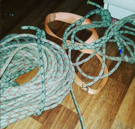 Paradójicamente, la imagen final muestra dos pilas de cuerda verde y un arnés de color marrón – artículos que parecen haber sido utilizados en el intento fallido por él y su amigo- para organizar una “caída selfie” desde el edificio Vologda Oblast.