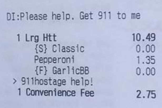 “Por favor, ayuda. Llamen al 911 por mí. 911, rehén, ¡ayuda!”, fueron sus desesperadas palabras que terminaron impresas en la boleta. En el local, rápidamente reconocieron a la clienta y llamaron a la policía, previniendo una tragedia mayor.