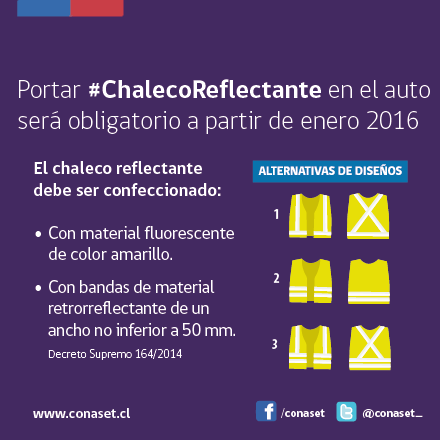 El primero de enero entró en vigencia la normativa que obliga a los conductores a usar chaleco reflectante. Esto con el fin de hacer más visible al conductor cuando se baje del transporte en una situación de emergencia, y así prevenir atropellos.
