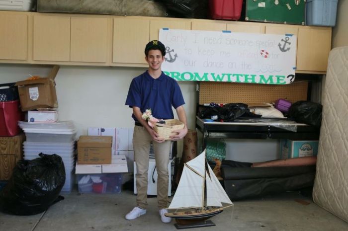 Carly es salvavidas y su baile de promoción será en un barco en San Francisco, por lo que la propuesta era perfecta. Además, Buckley le regaló una cesta que incluía una fotografía de ambos, chocolates, caramelos, flores y unos masticables salados.