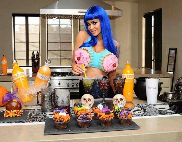 La guapa de 42 años –muy bien tenidos-, dejó a todos con la boca abierta al publicar en su cuenta de Instagram, su sensual disfraz de Halloween. En el mundo, los cupcakes están de moda, y como ella quiere estar siempre a la vanguardia, no encontró nada mejor que ponerse dos ‘quequitos’ tamaño extra grande en su busto.