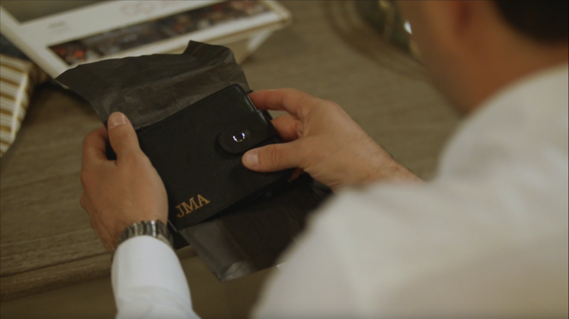 Al romper el envoltorio, se encontró con una billetera grabada con sus iniciales. “Para que guardes toda tu plata de Punta Virgen”, comentó.