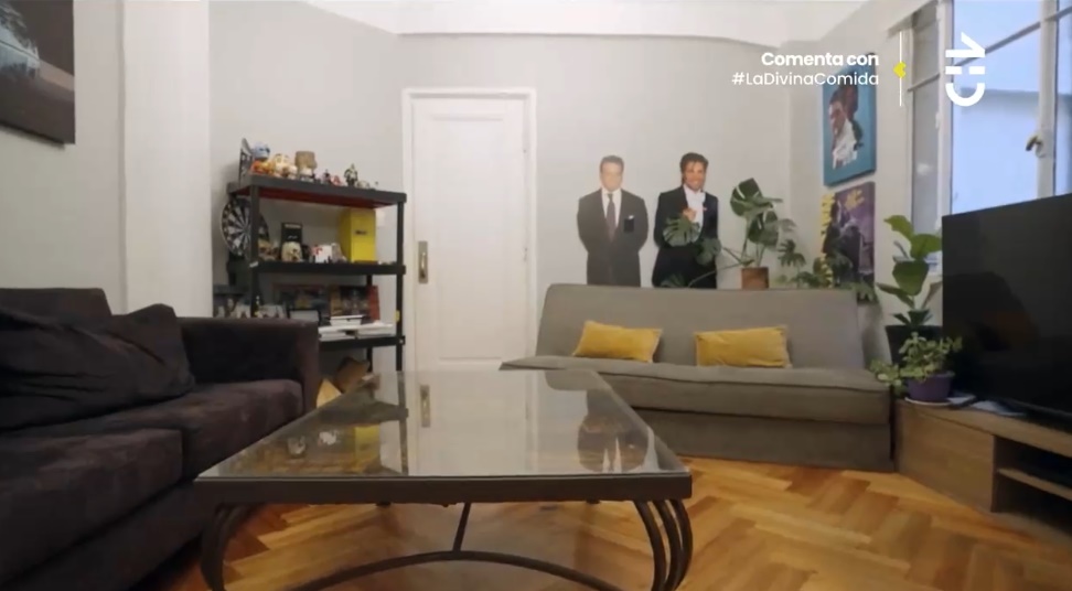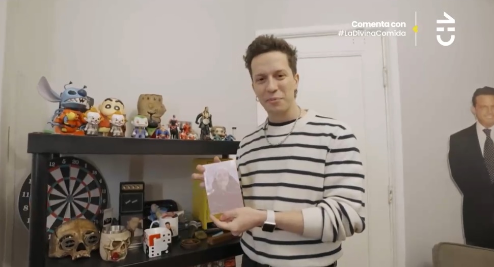 “Tengo medios invitados. Divina comida VIP”, bromeó el actor al mostrar dos gigantografías, una de Chayanne y otra de Luis Miguel, que estaban en su living.