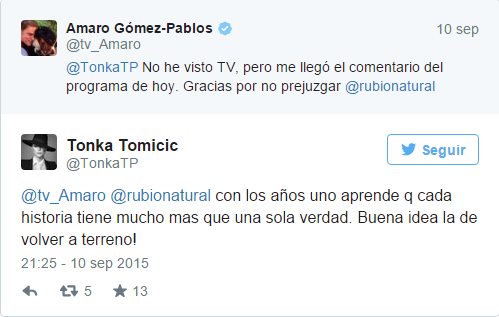 Ante estos dichos Amaro agradeció las palabras de Tonka a través de su cuenta de Twitter.