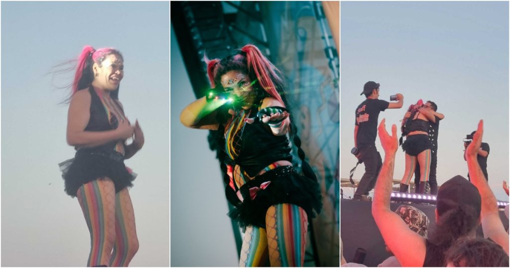 “¿Cómo está mi gente? (…) La cagaron, yo pensé que me iban a conocer tres o cuatro pelagatos, pero la cagaron”, reconoció la bailarina tras los vítores del público.