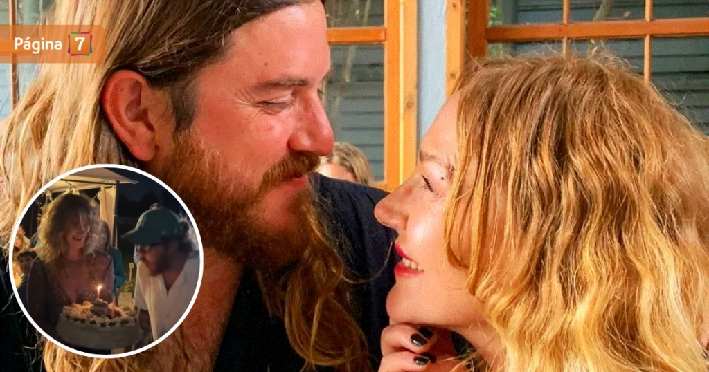 En un registro replicado por la actriz de 50 años, se le ve sosteniendo la torta para festejar la nueva vuelta al Sol de su compañero.