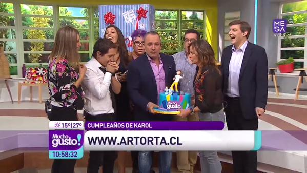 Pero esto no fue todo, pues al estudio llegó su polola Catalina Vallejos, quien junto a los compañeros de Karol Lucero le cantó el cumpleaños feliz, pero en inglés.