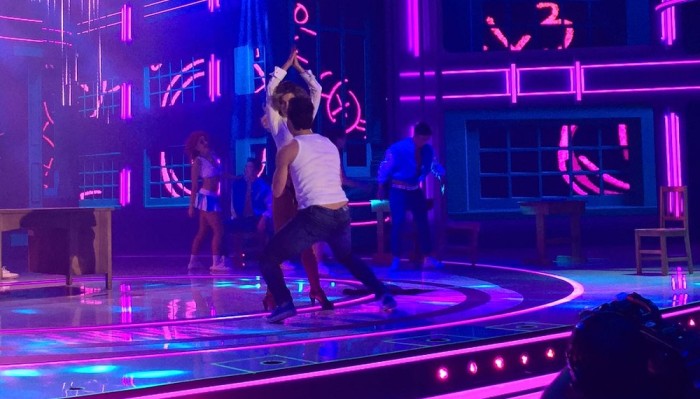 Los primeros en aparecer fueron Angie Jibaja y el ex Volverías con tu ex? Luis Mateucci, quienes se lucieron con un sensual baile rockero al ritmo de Back in black de la banda AC/DC. A ellos siguieron Francisca Merino y el actor de Preciosas Eyal Meyer, quienes bailaron Cobra de Nicki Minaj.