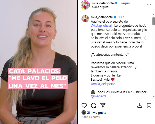 “Es un secreto terrible. No me lavo el pelo, casi nunca, me lo lavo una vez al mes”, lanzó Cata Palacios, sorprendiendo a Mila.