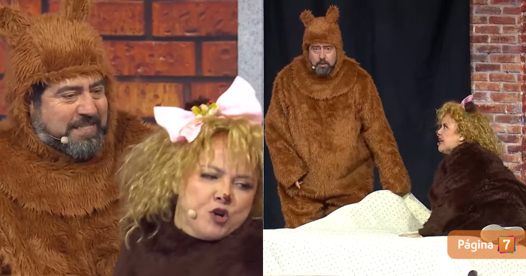 Allí, empezó a relatar La historia del oso Tito y la osa Tuta, personajes interpretados por Gustavo Becerra y Scarlett Ahumada.