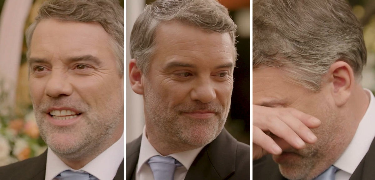 “Me voy a casar con una mujer increíble y estoy rodeado por los que más quiero“, le dice el novio a Benjita, su hijo, antes de emocionarse hasta las lágrimas al ver llegar a su pareja.