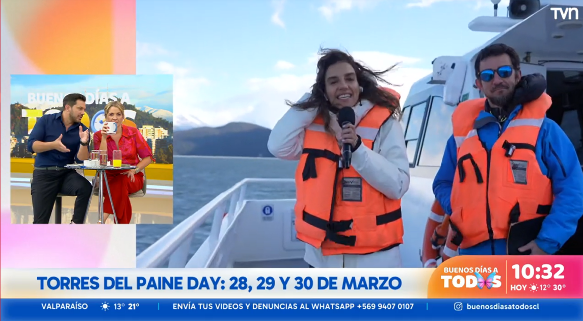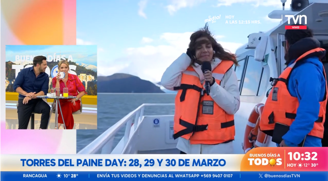 En un despacho transmitido por el matinal de TVN, Godoy conversó con Monserrat Álvarez y Simón Oliveros desde el Glaciar Grey, ubicado en la parte occidental de Torres del Paine.