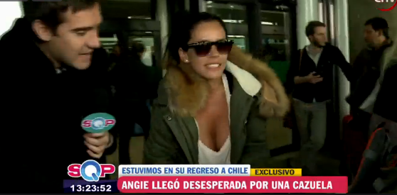 Con generoso escote y marcado bronceado Angie Alvarado volvió a Chile