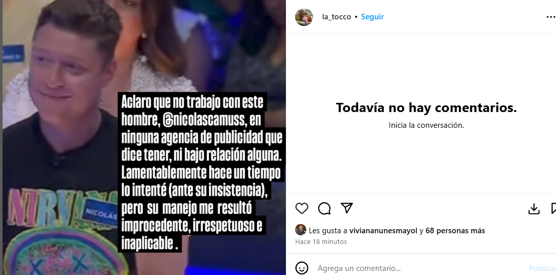 La argentina no se lo tomó con humor y respondió de inmediato a los dichos de Nicolás Camus, asegurando que “no trabajo con este hombre”.